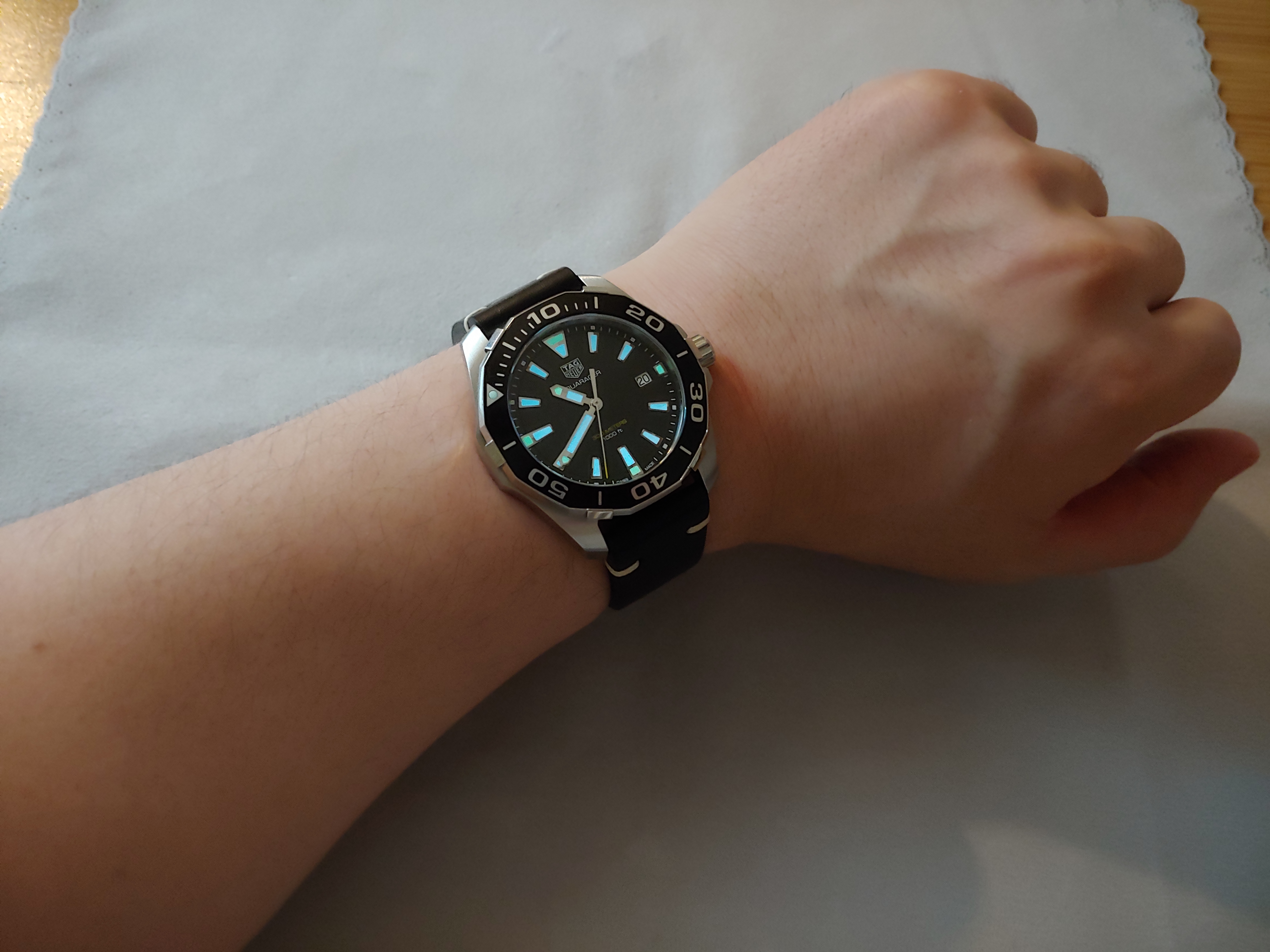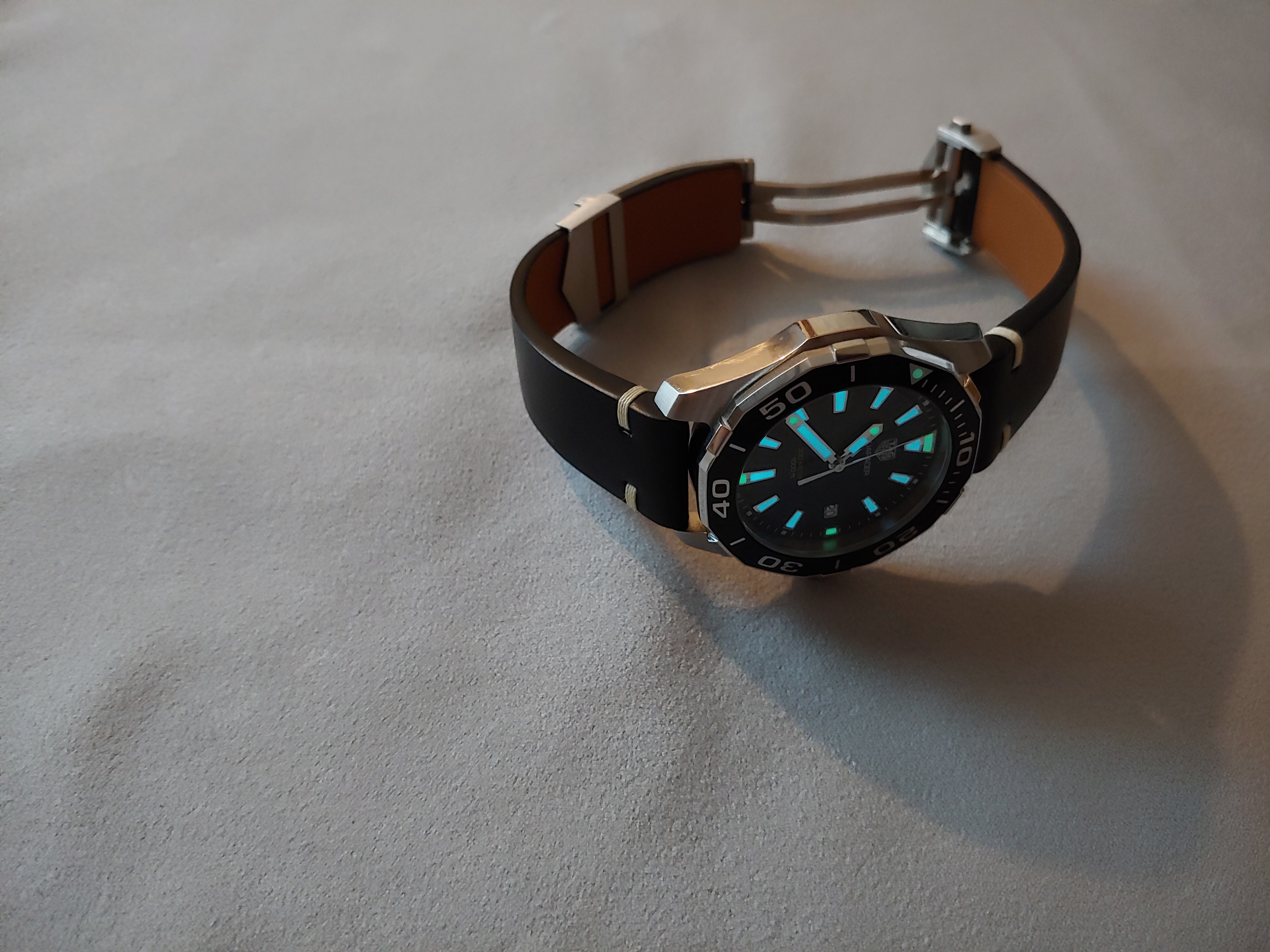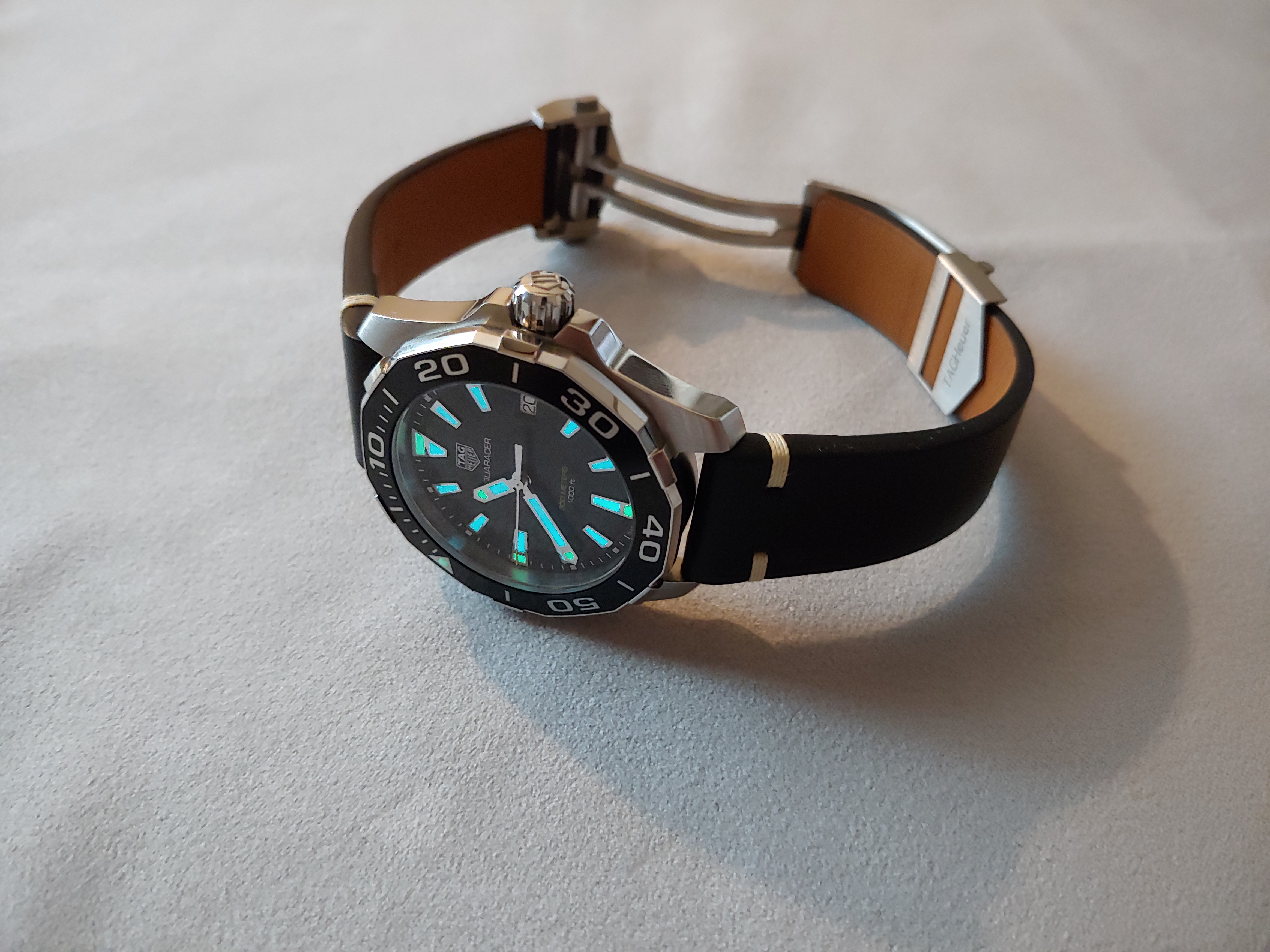 태그호이어 아쿠아레이서 가죽스트랩 줄질후기 겨울동안 시계를 착용하며, 메탈은 너무 차갑다는 판단하에 가죽 스트랩을 구매했다. 다이버워치이기 때문에 가죽 줄질은 안어울릴 수도 있겠다